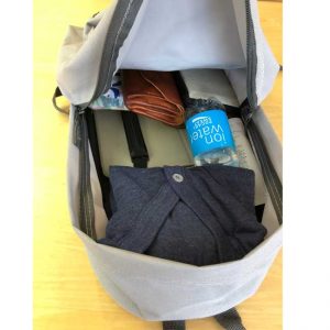 バッシュ入れて、着替えくらいは入ります。水筒もいけるでしょう。