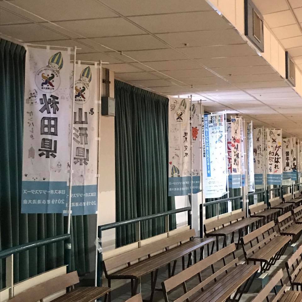 小学生が書いてくれた各県の応援のぼりが会場にありました。
