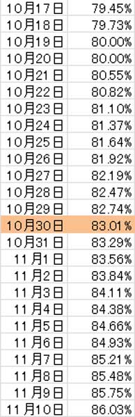 今日10月30日の場合は1年の約83%の目標を消化しいることになります。