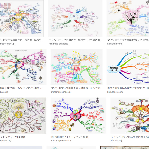 マインドマップってカラフルに絵を描いていくこういう感じの奴なんですけど