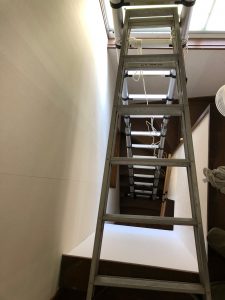 2階の天井から1階の廊下までの階段の壁だから足場が必要。