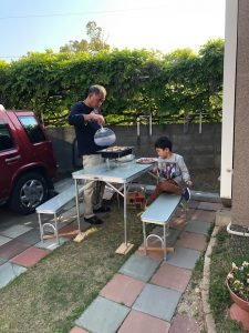 ①結構な頻度で庭先でプチBBQが開催されている。