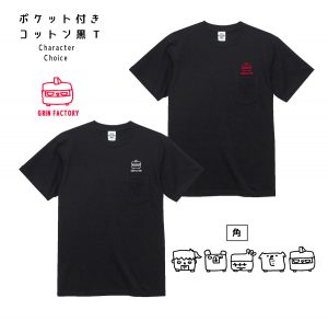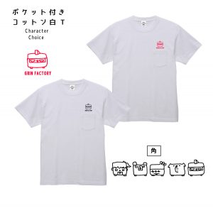 ※通常型ポケ付きTもS-XLまでのサイズ展開のため、ポケットが付いていない(丸型キャラをプリントしているTシャツ)に角型のワンポイントをプリントさせていただくことも可能です。