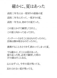 何か一つでも、この夏の記憶が、記念が、残ってくれたら。