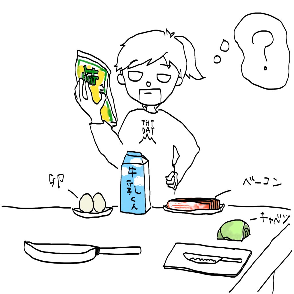 牛乳と卵もベーコンも必要っと。