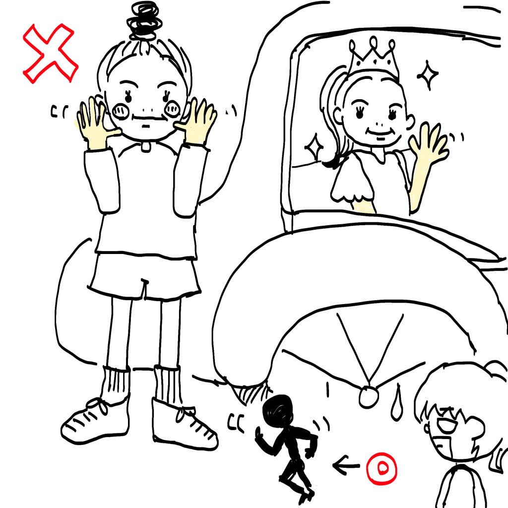 「走りながら、みんなにバイバイしたらいいの?」
