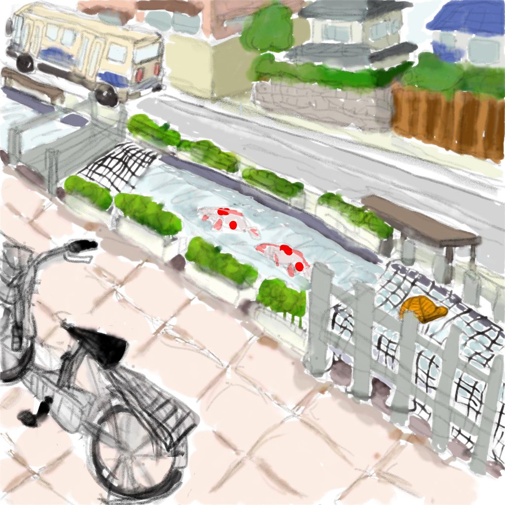 道路の横に流れている人工的な浅い流れる小さい川みたいなところってありますよね。