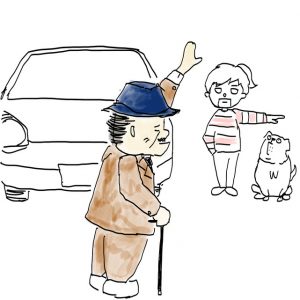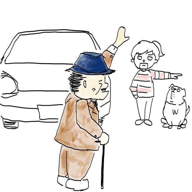 そこを渡るおじいさん。