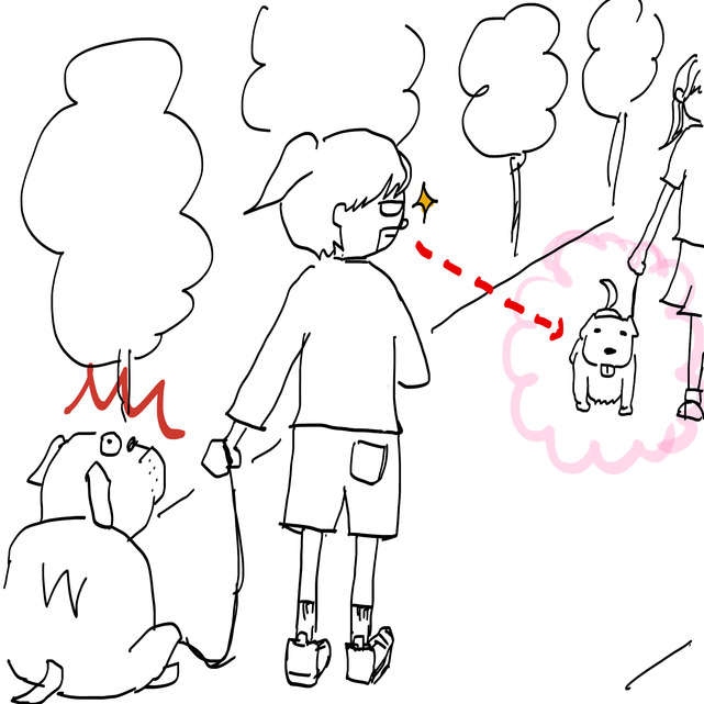 昨日は無意識に犬についての「ひとコマイラスト」を描いていました。