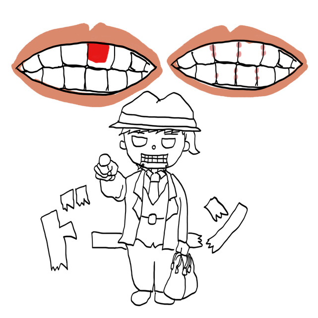 「あれ?歯から血出てる?あ、歯から血でるわけないか、ダイヤモンドより硬いのに。あ、それも違うか。」