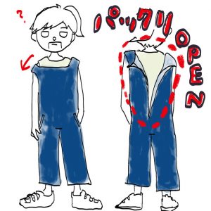 閉めないとイケないチャックを大っぴらにあけてボンヤリを露呈してしまった。