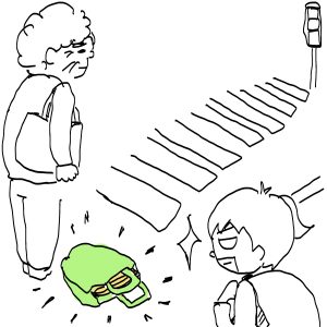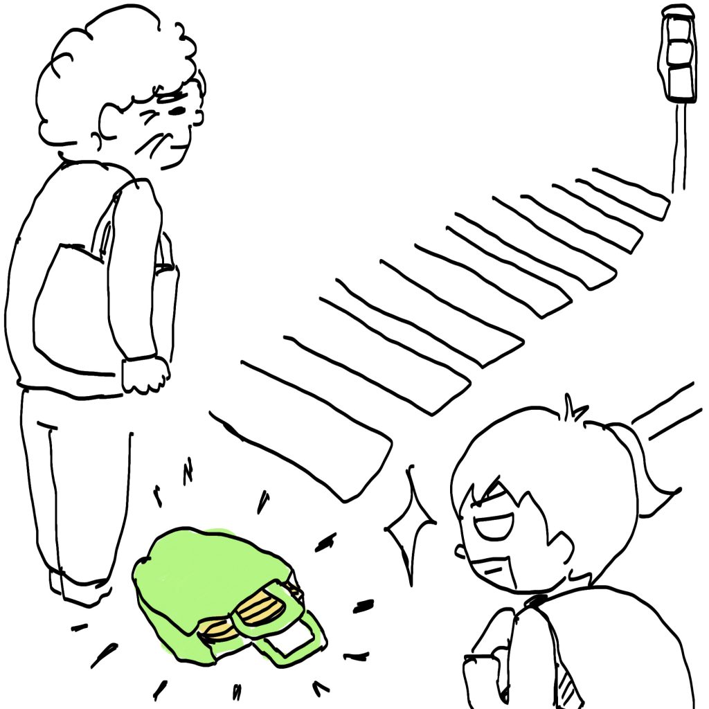 あと少し青信号になるまで重たい荷物を地面に置いてゆっくりできる時間を奪い、