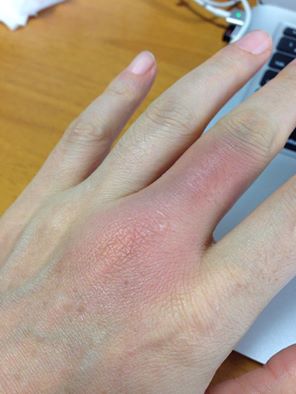 朝起きたら手がめっちゃ腫れててびっくりしました笑