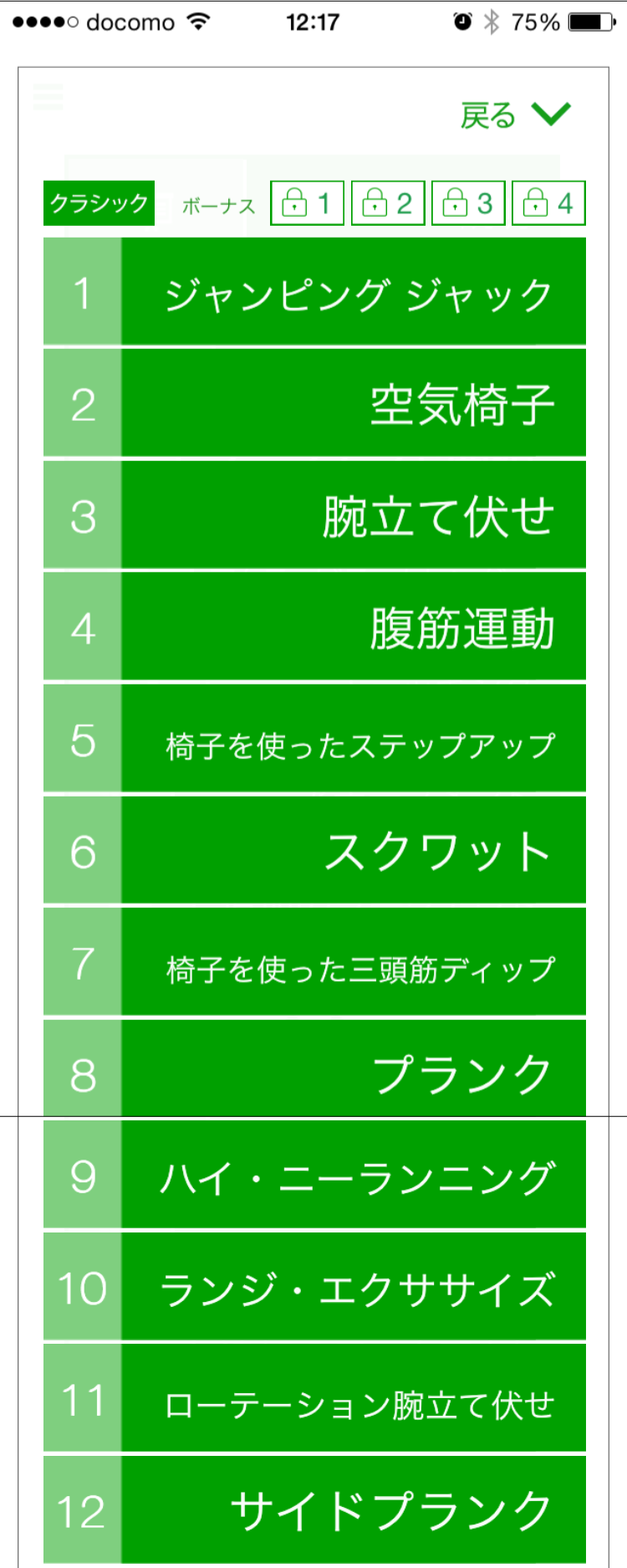 アプリ「7 分間エクササイズ」を1セットしました。
