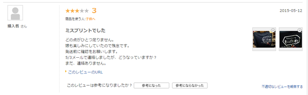 連絡がないため、しかたなく商品レビュー
